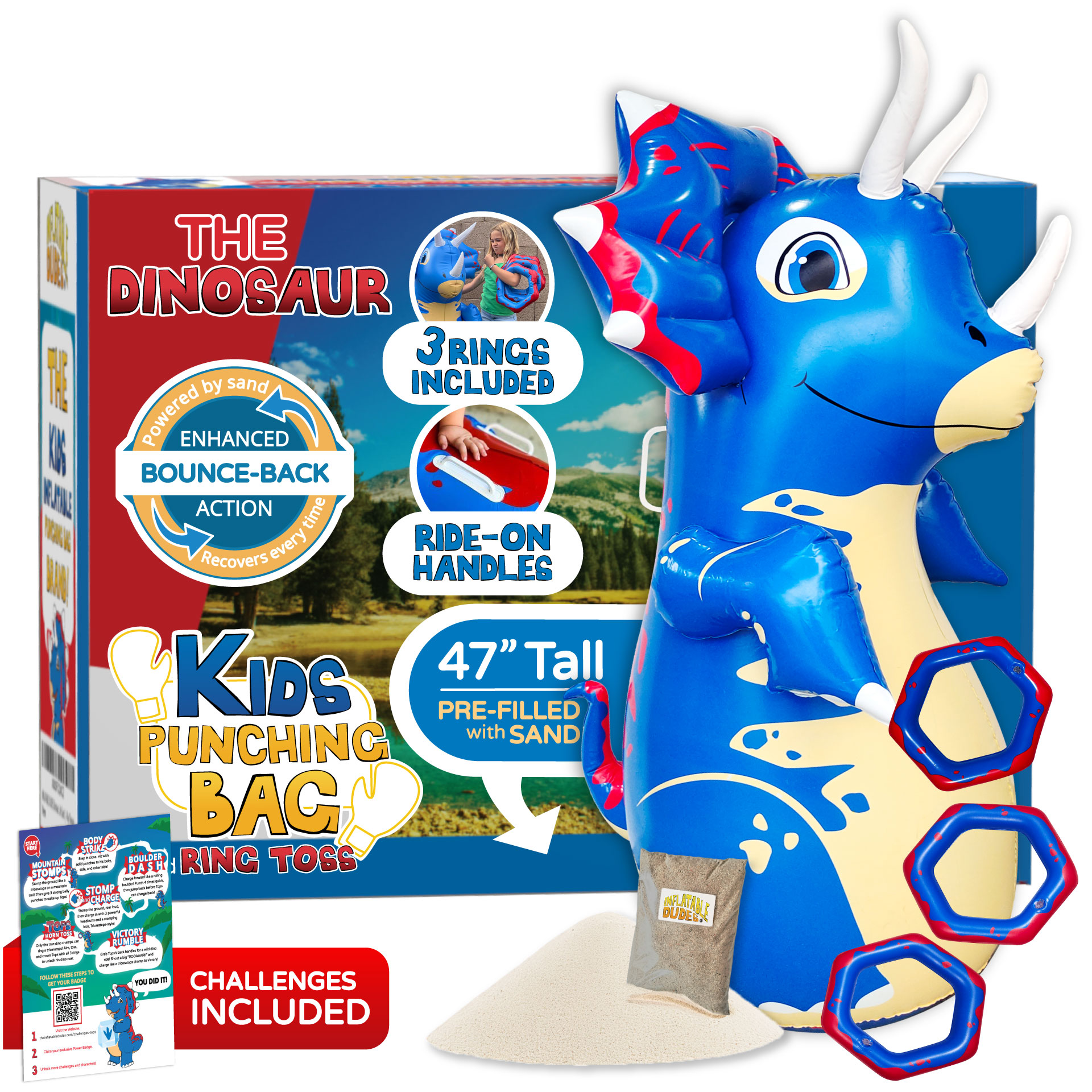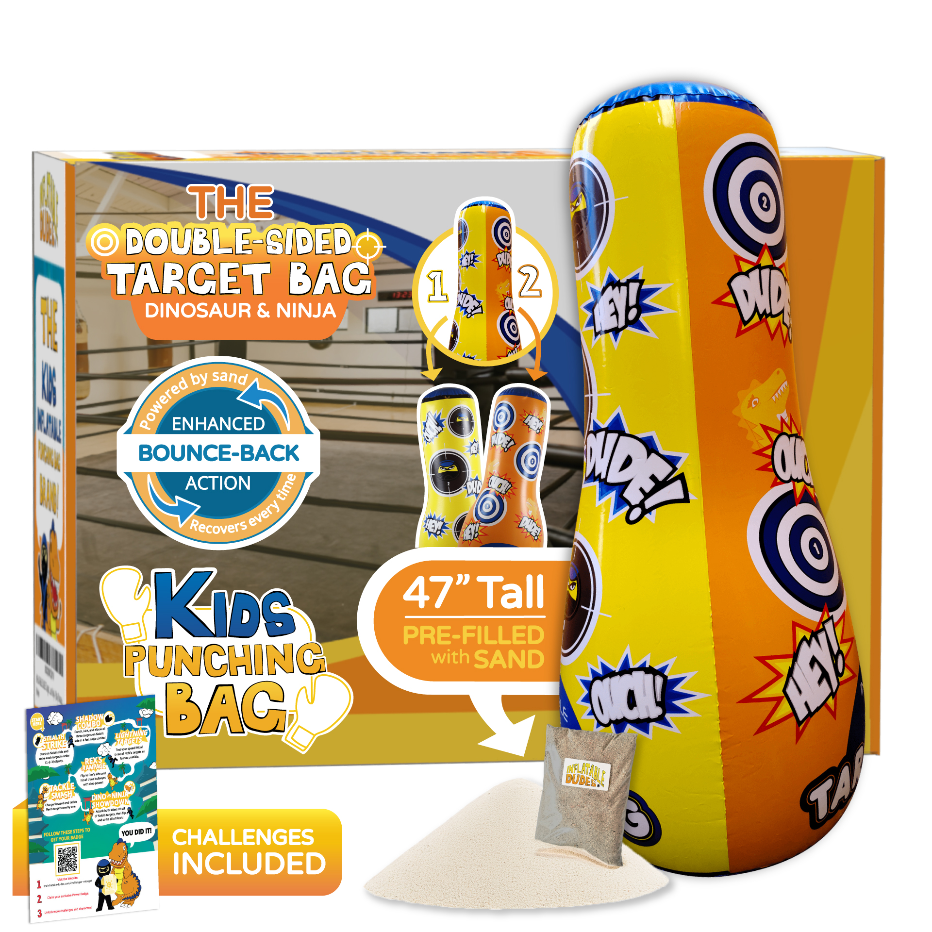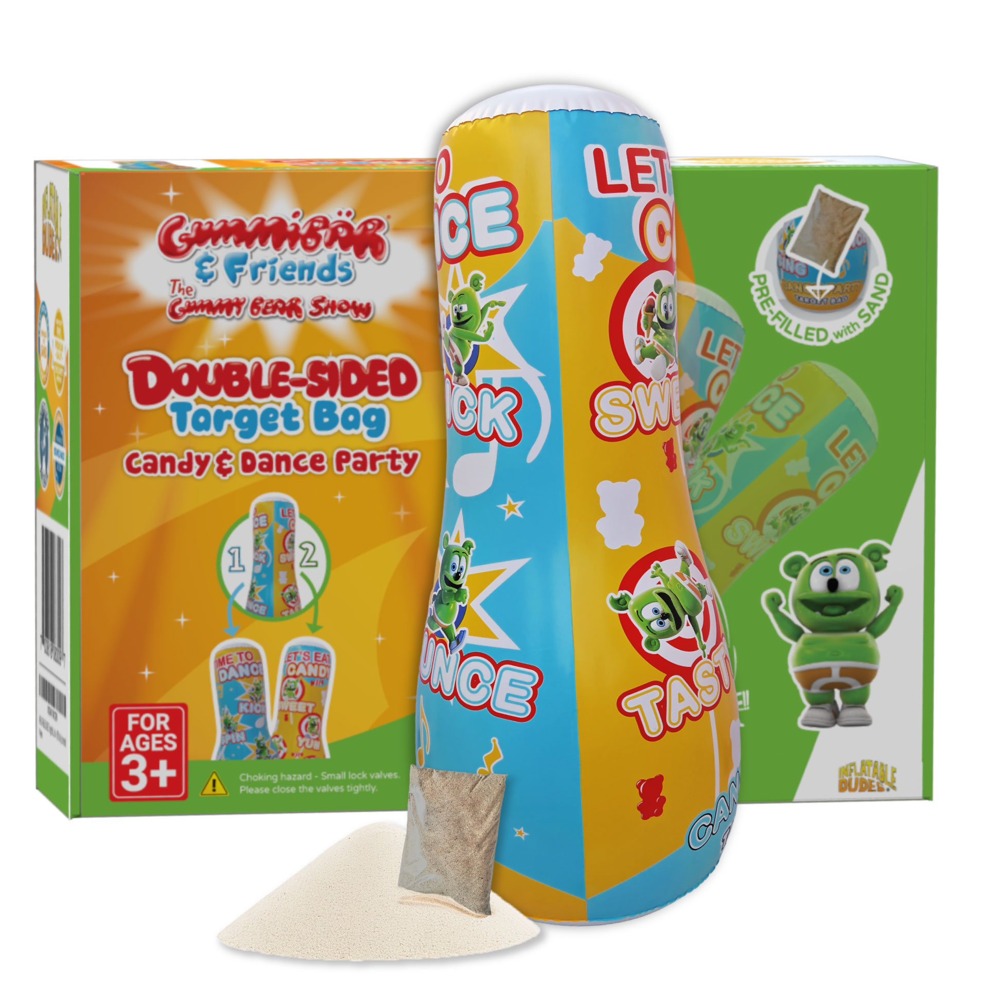 - Double-sided inflatable punching bag with Candy & Dance Party.